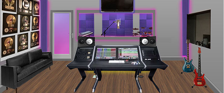 Angle showing audio / broadcast consoles with KG